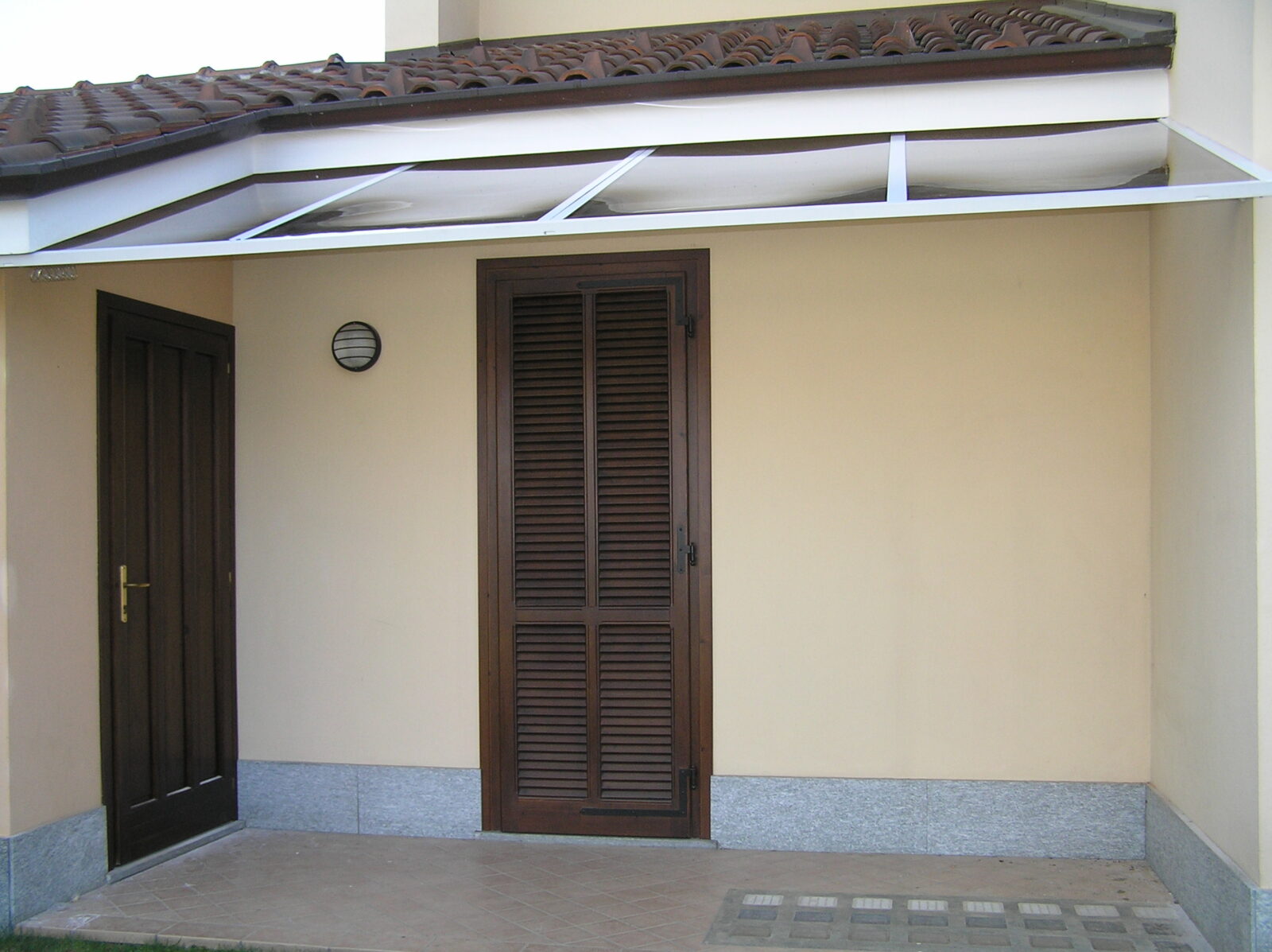 Telai in alluminio verniciati a polveri epossidiche e acciaio inox, dotati di guarnizioni in Dutral, accolgono lastre in policarbonato compatto, materiale di incredibile resistenza agli urti e protetto contro i raggi U.V.